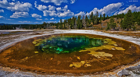 Journée étape dans le Yellowstone. Des bisons, des wapitis, des élans, des grizzlys, le chant des loups, des geysers de toutes les couleurs. les chutes d'eau. des formations de roches aux couleurs imprévisibles, « ifs the world's number one National Park ! »