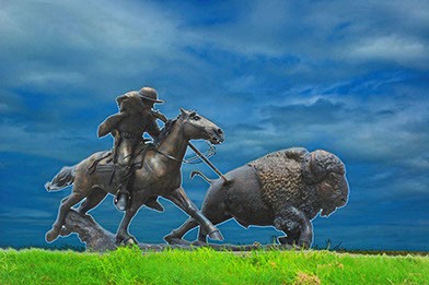 Chapeaux, lassos, bottes, rendez-vous à Cody, la ville du célèbre Buffalo Bill et son fameux rodéo, Traversée du col « Little Big Horn » Les cow-boys sont autour de nous, les chevaux omniprésents. C'est une étape au coeur d'une Amérique oubliée du tourisme parce que tout est trop loin, trop grand, trop vaste et c'est justement là que, sur nos Harley, nous nous sentons au paradis. Vous êtes dans l'Ouest Sauvage !