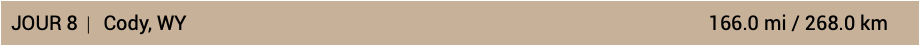 • JOUR 8 │ Cody, WY 166.0 mi / 268.0 km